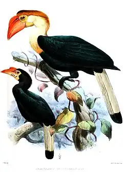 - ↑ a b c d POONSWAD, Pilai; KEMP, Alan; STRANGE, Morten. Hornbills of the World – A Photographic Guide. Singapore: Draco Publishing, 2013. Dostupné online. ISBN 978-981-07-3528-9. S. 190-191. (anglicky)