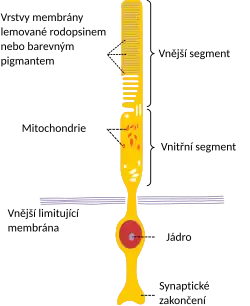 Smyslovým orgánem je oko (oculus), které je složeno z oční koule a přídatných orgánů. Vlastní světločivná vrstva oka, sítnice, obsahuje fotoreceptory, vysoce specializované světločivé buňky, tyčinky a čípky. Ty jsou zanořeny v pigmentovém epitelu, který zajišťuje jejich výživu a světelnou izolaci. Člověk má v každém oku přes 100 miliónů světločivých buněk.