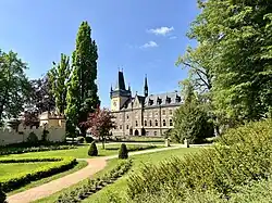 Původní hrad byl přestavěn na zámek buď již ve 2. polovině 16. století, nebo po třicetileté válce. V roce 1749 měl zámek podobu čtyřkřídlé dvoupatrové budovy a byl obklopen hradbou s věžemi. V roce 1781 vyhořel a západní křídlo již nebylo obnoveno. K zásadní přestavbě zámku v duchu romantické novogotiky došlo v letech 1891-1894 podle plánů architekta Jana Vejrycha. Trojkřídlá dvoupatrová budova byla upravena tak, aby měla vzhled stavby z lomového kamene, a zastřešena vysokou valbovou střechou. V jihovýchodním nároží vznikla zvýšením o patro třípatrová věž, celá stavba byla ozdobena několika gotickými štíty, věžičkami a vikýři. Ústředním prostorem zámku se stal nově zřízený rytířský sál. Část hradeb a opevnění byly zbořeny, zbytky novogoticky upraveny. Přibyla novogotická vstupní brána do zámeckého areálu.[4]