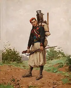 - ↑ Stalo se tak za účelem usnadnění mobilizace pro případ nasazení zuávů do války v Evropě. V roce 1870 totiž došlo k tomu, že rezervisté žijící ve Francii museli být nejprve přepraveni do Alžíru, Constantine nebo Oranu, kde byli zařazeni do svých jednotek, a poté se vraceli zpět do Francie.