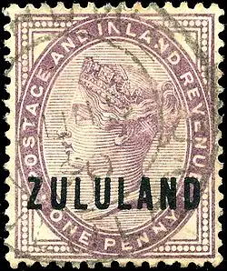 Na sklonku 19. století, v době britského protektorátu, poštovní správa nechala vytisknout řadu poštovních známek s přetiskem Zululand. Napřed, roku 1888 byly použity známky Natalu a britské, opatřené přetiskem ZULULAND. Po nich byly dány do oběhu definitivní známky se stejným názvem, tedy bez přetisku. Celkem bylo v období let 1888 až 1891 platných v Zululandu 30 známek. Od roku 1898 na zdejším území platily známky Natalu.[2]