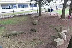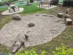 Zvířátka, která byla postavena v roce 1980, tvoří skupia čtyř zvířat (želva, hrošík, krokodýl a pelikán) a dva kamenné kvádry složící k posezení. Uprostřed mezi zvířaty je želva a u pelikána jsou umístěny kamenné kvádry. Autorem je akademický sochař Václav Frydecký (1931–2011). Dílo a jeho okolí prošlo rekonstrukcemi a je součástí dětského hřiště areálu nemocnice. V čase otvíracích hodin je místo volně přístupné.[1][2][3]