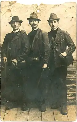 Zvěroklestiči – bratři Albín, Jan a Metoděj Bartošovi z Hostětína (okolo roku 1910): výnosným zvěroklestičstvím se v obcích na Bojkovsku a Slavičínsku živila i polovina mužů z dědiny. krbaňa – manželka, hospodyně