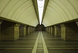 ![]() ![]() ![]() Horní obrázek je střední loď stanice Dolní obrázek vpravo je nástupiště s medailony a obložením pílířů, klenby a podlahy Dolní obrázek vpravo je stanice během ostřeleckého útoku na Kyjev v roce 2022 | |||||||||||||||||||||||||||||||||||||||||||||||||||||||||||||||||||||||||||||||||||||||||||||||||||||||||||||||||||||||||||||||||||||||||||||||||||