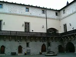 V klenutém průchodu se zachovala gotická sedilia s kružbami a původní fresky. Z reprezentačních prostor osobité místo zabírá kaple s architektonickými prvky zahajované pozdní gotiky, dále rytířský sál a místnosti zaklenuté na střední sloup. Impozantní je i mladší barokní hala z 18. století s dřevěným malovaným kazetovým stropem rozděleným na 78 polí, v nichž jsou symbolické obrazy římských králů a habsburských císařů uspořádány chronologicky a končí obrazem Karla VI.