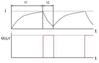 Jedná se o pulzní měnič, který je řízen délkou pulzů, tedy délkou sepnutí spínané součástky. Nezbytným prvkem je indukčnost, v níž se akumuluje energie a která přispívá k vyhlazení proudu. Měnič v provozu pulzuje mezi dvěma stavy: